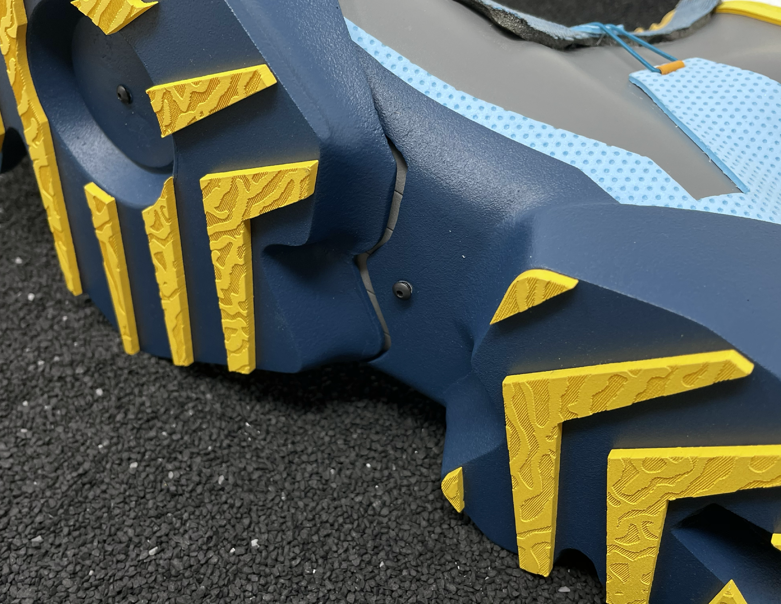 by increasing the surface area of the outsole, the runner will sink less due to the weight being distributed over a larger surface area.