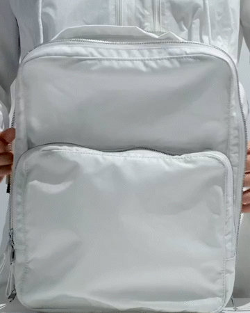 Sewed canvas bag with recycled PP panels to provide structure. Panels are attached through the buttons.