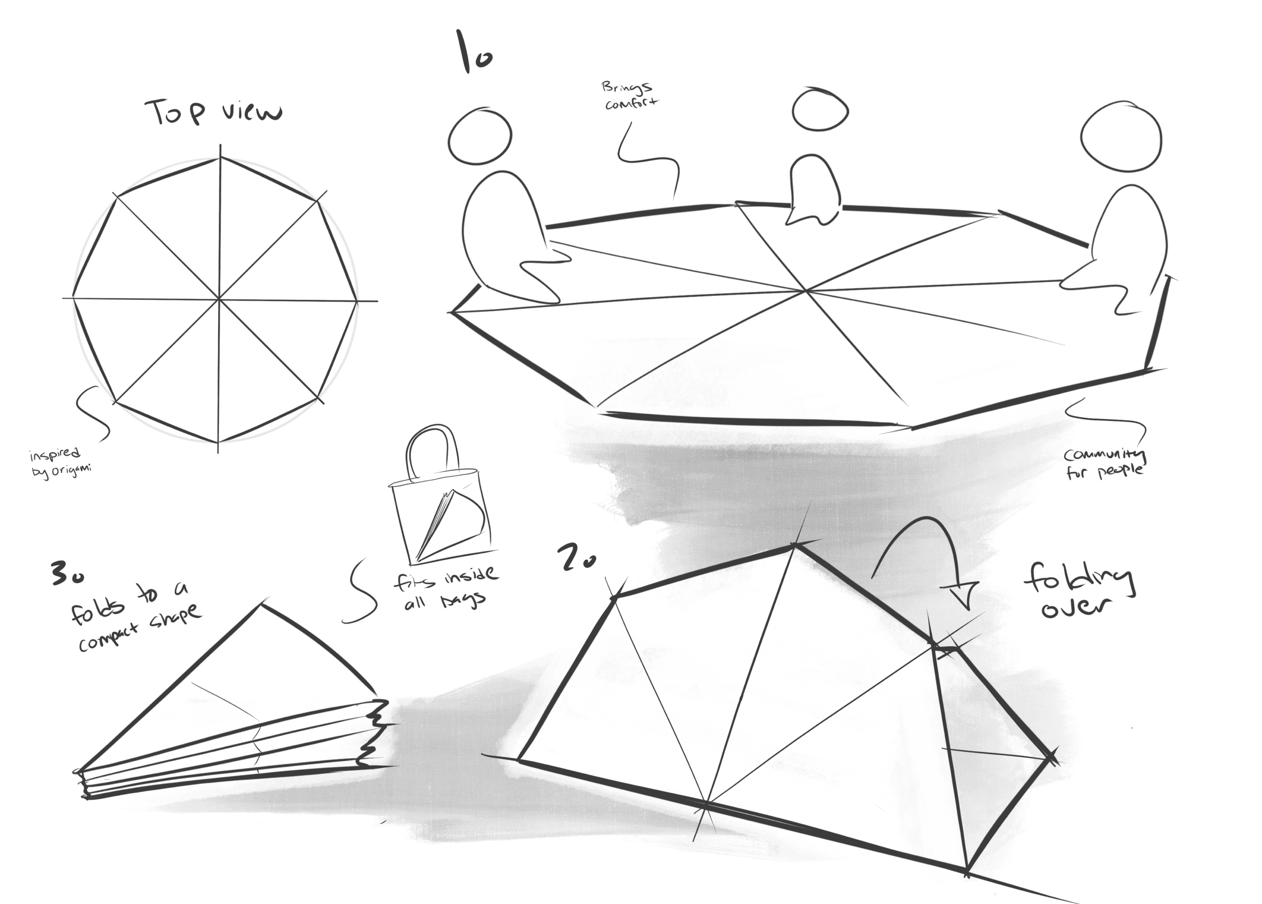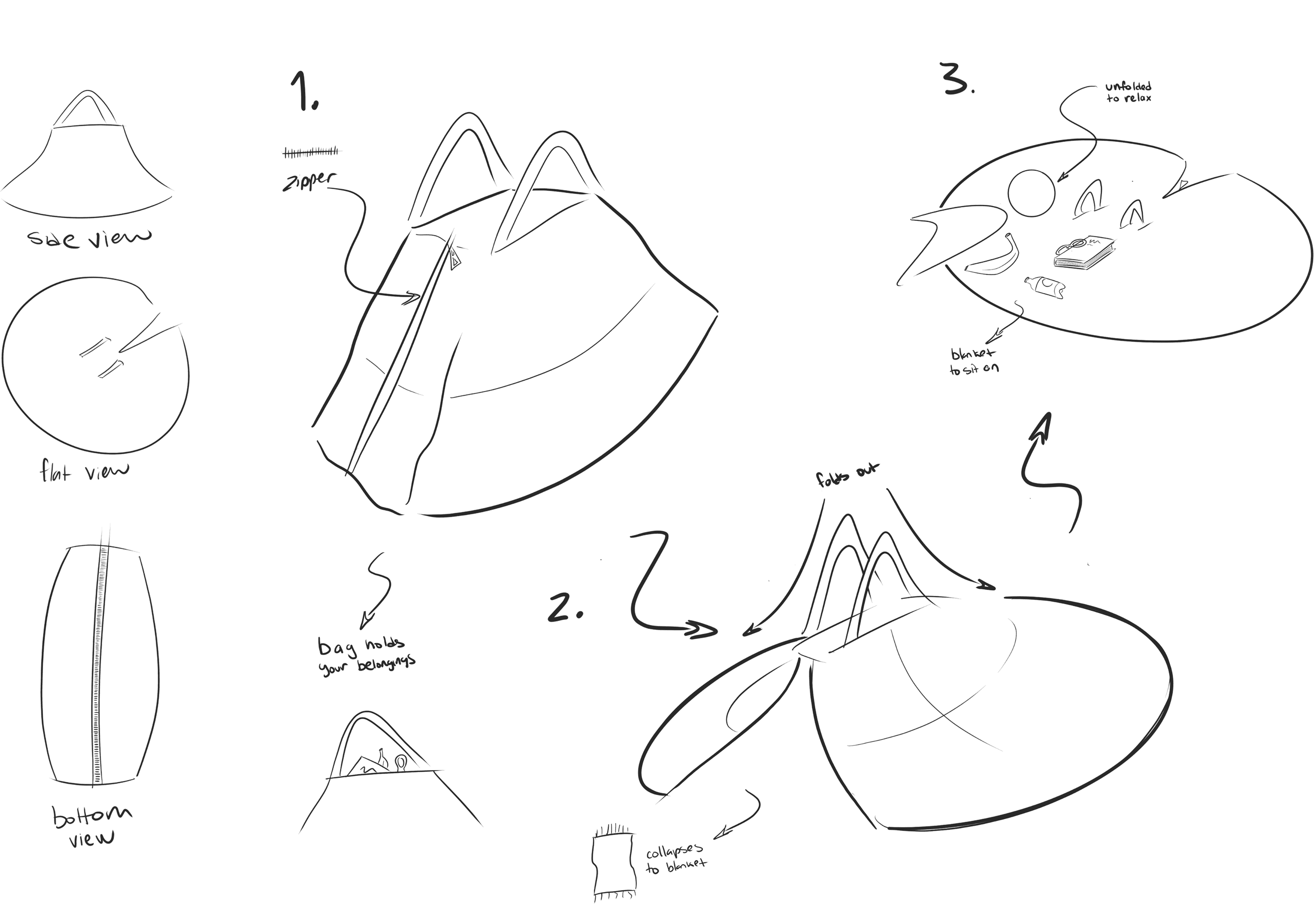A blanket that follows the design language of the bag. Inspired by origami, making it easily transportable.