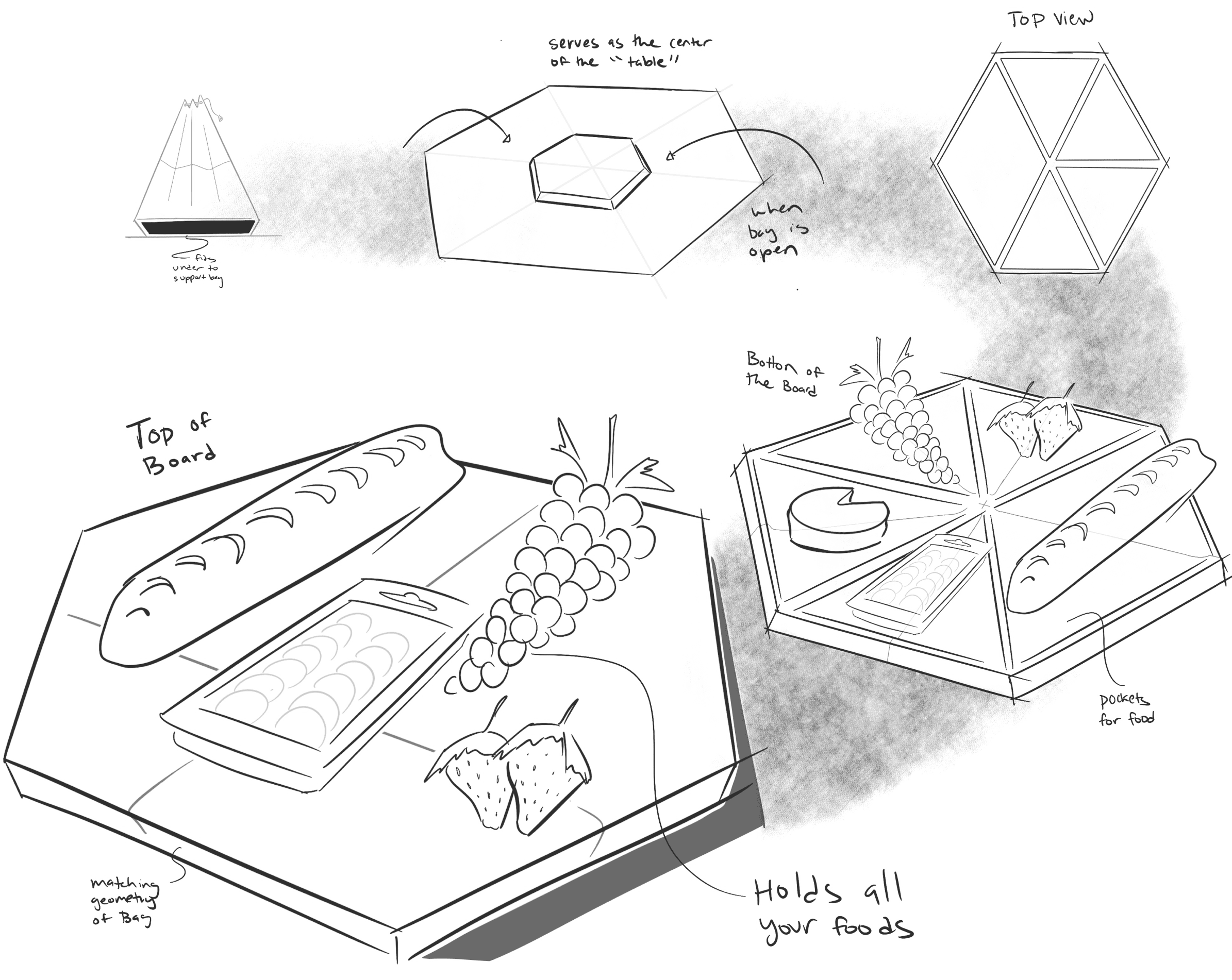 Explored initial ideas and concepts, finding new ways to create community through a bag.